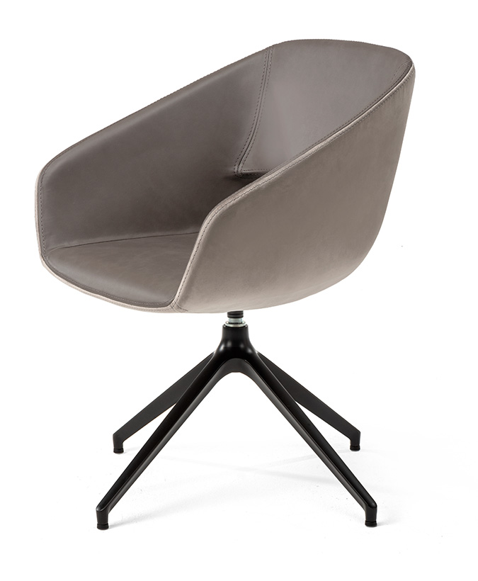 De Burq vergaderstoel open (swivel spider poot) is voorzien van een draaibaar spider frame, verkrijgbaar in zwart (gecoat) of chroom. De moderne zitschaal kan worden bekleed met wol, stof of leer in talloze tinten. De Burq vergaderstoel open is ook verkrijgbaar met een 4-poots houten onderstel, een vaste spiderpoot, als barkruk of met een houten spiderpootonderstel.