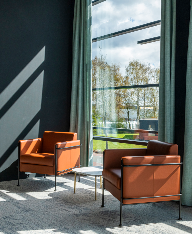 De Yes fauteuil heeft een chique en luxe uitstraling door zijn brede zit. De stoel kan worden geconfigueerd in stof of kunstleder en op aanvraag in andere stofferingen. Het onderstel en het frame van de Yes fauteuil wordt uitgevoerd in gepolijst chroom.