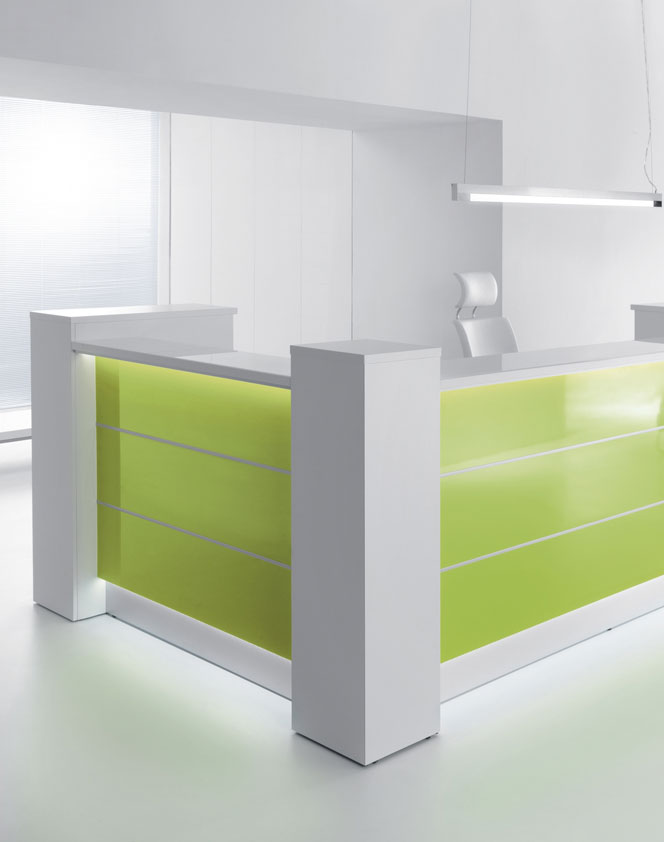De Valley receptiebalie is in verschillende kleuren verkrijgbaar. Om een impressie te krijgen wat er allemaal mogelijk is kunt u alvast de foto's bekijken. De Valley heeft standaard een hoogte van 111 cm. De vorm, uitstraling en afmetingen zijn geheel naar eigen wens te configureren. Neem voor meer informatie contact met ons op.